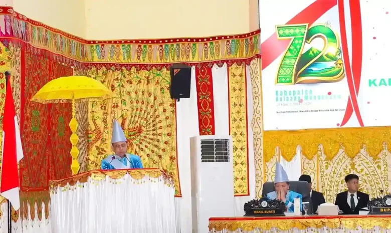 Bupati Yusra Alhabsyi dalam sambutannya menegaskan bahwa HUT ke-72 ini bertepatan dengan satu tahun kepemimpinannya bersama Wakil Bupati Dony Lumenta. Ia menyampaikan capaian penting, termasuk peringkat pertama pertumbuhan ekonomi di Sulawesi Utara pada tahun 2025.
