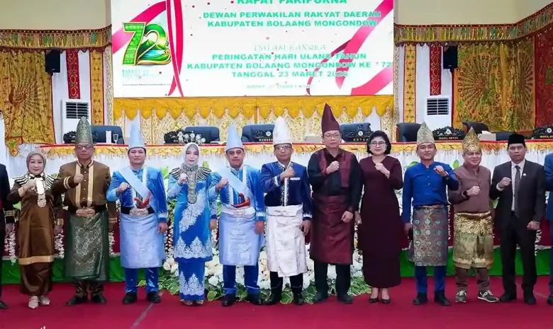 Bolmong – Dewan Perwakilan Rakyat Daerah (DPRD) Kabupaten Bolaang Mongondow menggelar Rapat Paripurna Istimewa dalam rangka memperingati Hari Ulang Tahun (HUT) ke-72 Kabupaten Bolmong, Jumat (27/3/2026). Acara berlangsung khidmat di ruang rapat paripurna DPRD, dipimpin langsung oleh Ketua DPRD Tonny Tumbelaka bersama Wakil Ketua Sulhan Manggabarani dan Febrianto Tangahu.