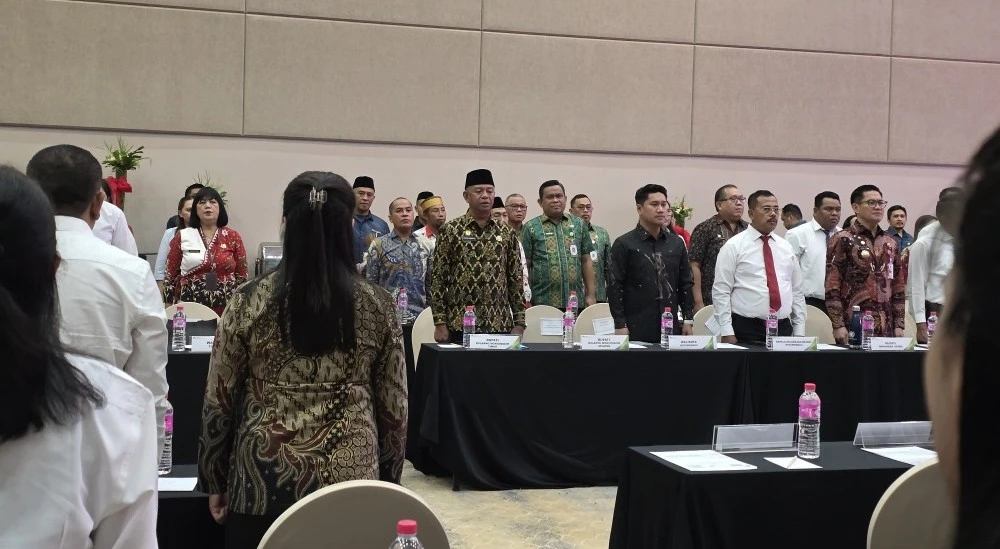 Manado – Bupati Bolaang Mongondow Timur (Boltim), Oskar Manoppo, menghadiri Rapat Monitoring dan Evaluasi (Monev) Capaian Universal Coverage Jaminan Sosial Ketenagakerjaan (UCJ) Provinsi Sulawesi Utara yang digelar di Hotel Peninsula Manado, Kamis (18/12/2025).