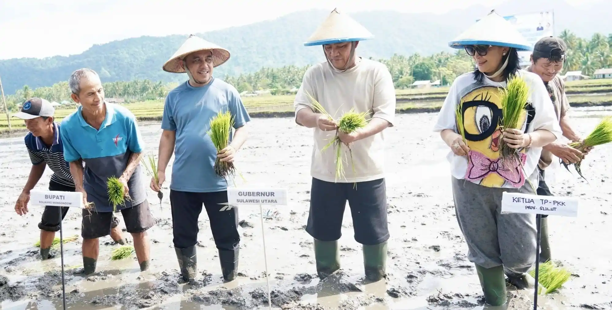 Gubernur Sulut dan Bupati Bolmong Turun ke Sawah, Dorong Swasembada Pangan Lewat Gerakan Tanam Padi
