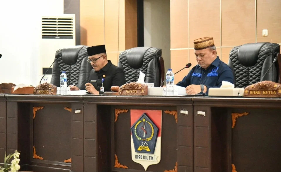 Boltim – Sekretaris Daerah M. Iksan Pangalima mewakili Bupati Bolaang Mongondow Timur, Oskar Manoppo, pada Rapat Paripurna DPRD yang bertujuan untuk mengesahkan dua Rancangan Peraturan Daerah (ranperda), yaitu ranperda mengenai Kawasan Tanpa Rokok (KTR) dan ranperda tentang Rencana Pembangunan dan Pengembangan Perumahan dan Kawasan Permukiman (RP3KP) di Ruang Paripurna DPRD Boltim, Kamis (4/12/2025).