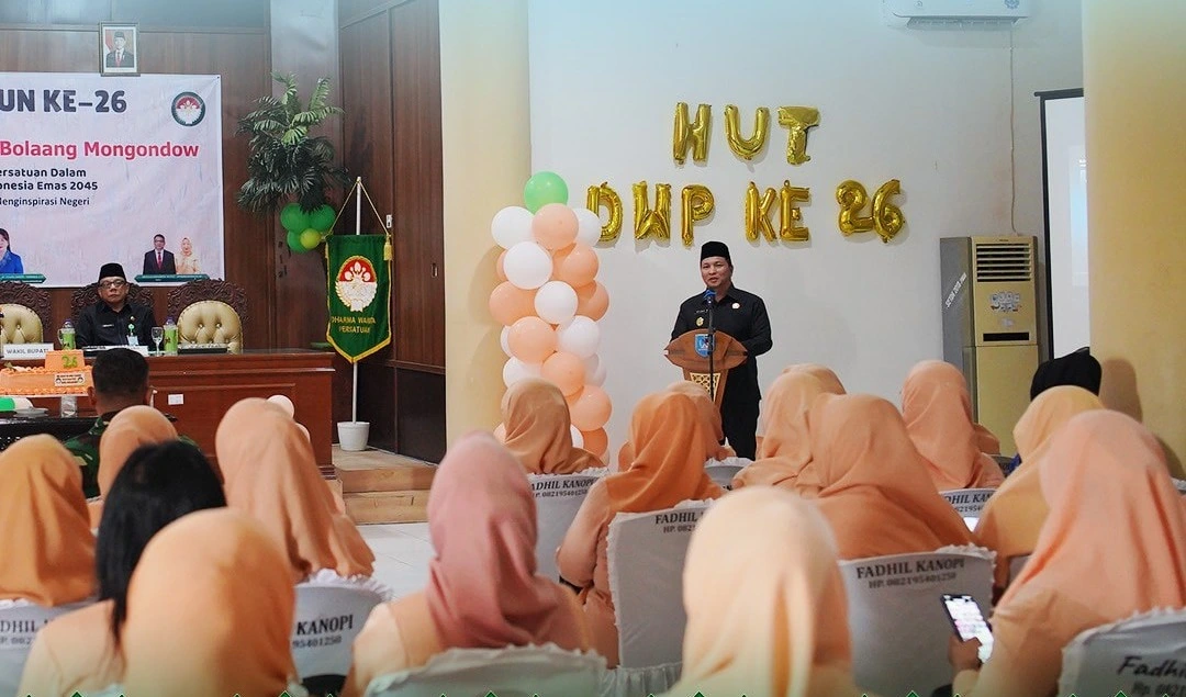 Bolmong – Wakil Bupati Bolaang Mongondow, Dony Lumenta, hadir sekaligus membuka secara resmi peringatan puncak Hari Ulang Tahun (HUT) Dharma Wanita Persatuan (DWP) ke-26 tahun 2025.
