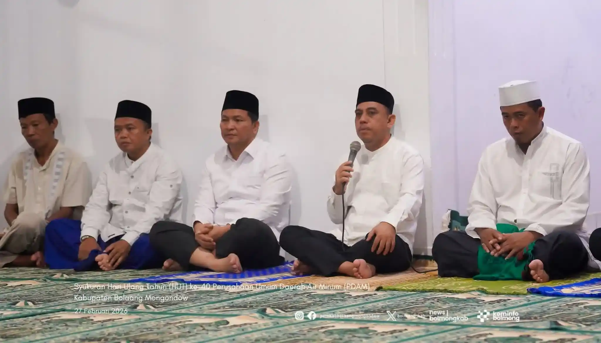 Bolmong – Suasana penuh khidmat menyelimuti Kantor Perusahaan Umum Daerah Air Minum (PDAM) Kabupaten Bolaang Mongondow pada Jumat (27/2/2026). Perusahaan daerah yang telah menjadi tulang punggung penyediaan air bersih bagi masyarakat ini merayakan Hari Ulang Tahun (HUT) ke-40 dengan sebuah acara syukuran yang dihadiri langsung oleh Penjabat Bupati Bolaang Mongondow, Yusra Alhabsyi, SE, M.Si, bersama Wakil Bupati Dony Lumenta.